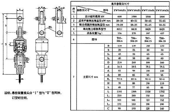 懸掛裝置是在提升或牽引系統(tǒng)中,鋼絲繩與容器之間的連接裝置。我公司可以根據(jù)用戶實際使用情況提供配套的懸掛裝置。