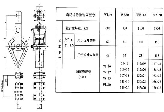 懸掛裝置是在提升或牽引系統(tǒng)中,鋼絲繩與容器之間的連接裝置。我公司可以根據(jù)用戶實際使用情況提供配套的懸掛裝置。